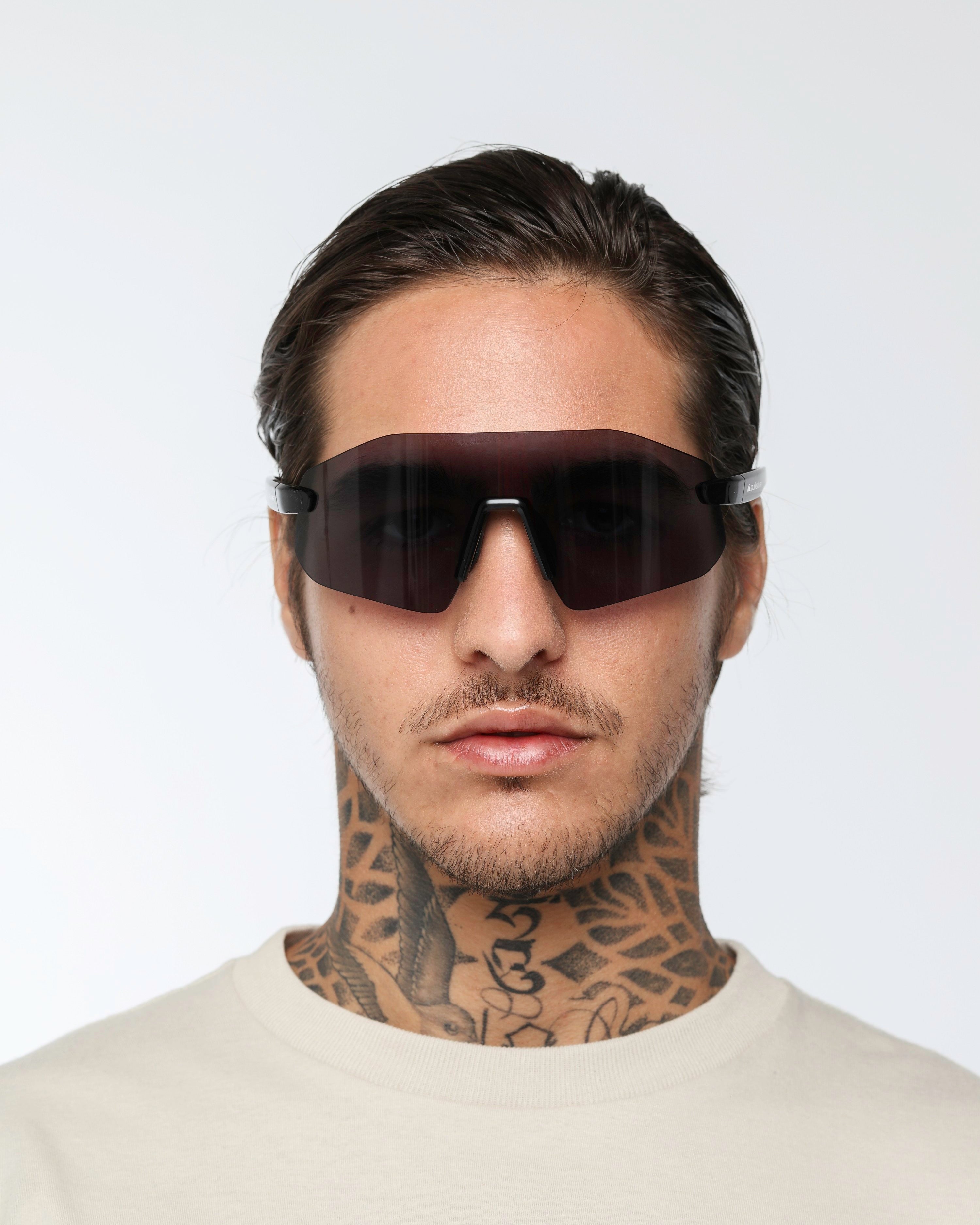 Óculos de alta performance com lente única para máxima proteção e liberdade de movimento.