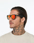 Óculos wayfarer anatômico com lentes espelhadas e perfil médio, combinando estilo e proteção.