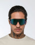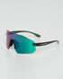 Óculos de alta performance com lente única para máxima proteção e liberdade de movimento.
