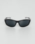 Óculos esportivo com design curvado e hastes vazadas para leveza e ventilação.